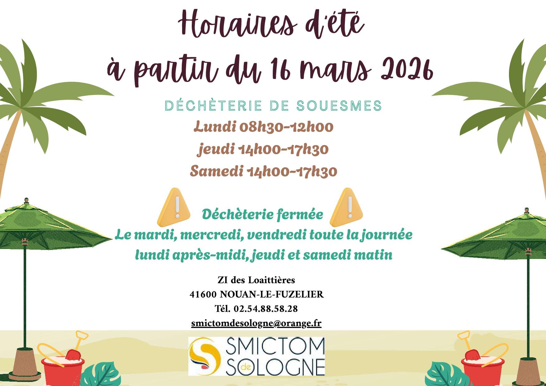 HORAIRES D’ETE DECHETERIE